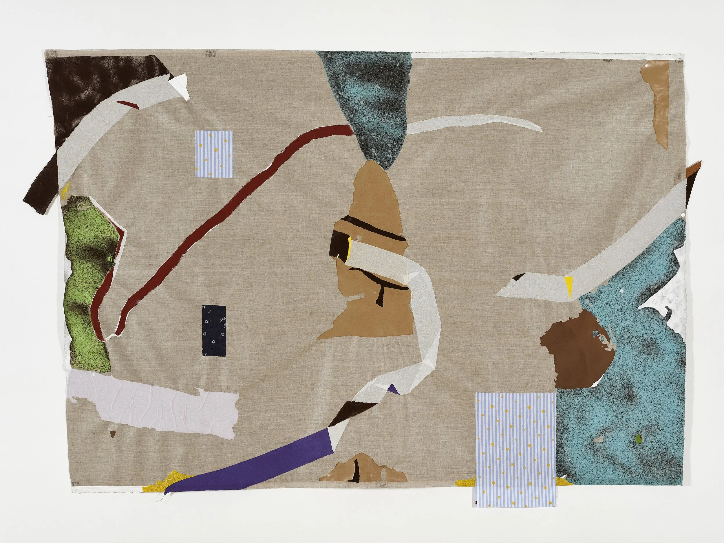 Acrylic, ink, paper, fabric, coffee grounds, cotton gauze, Bolognese plaster on linen