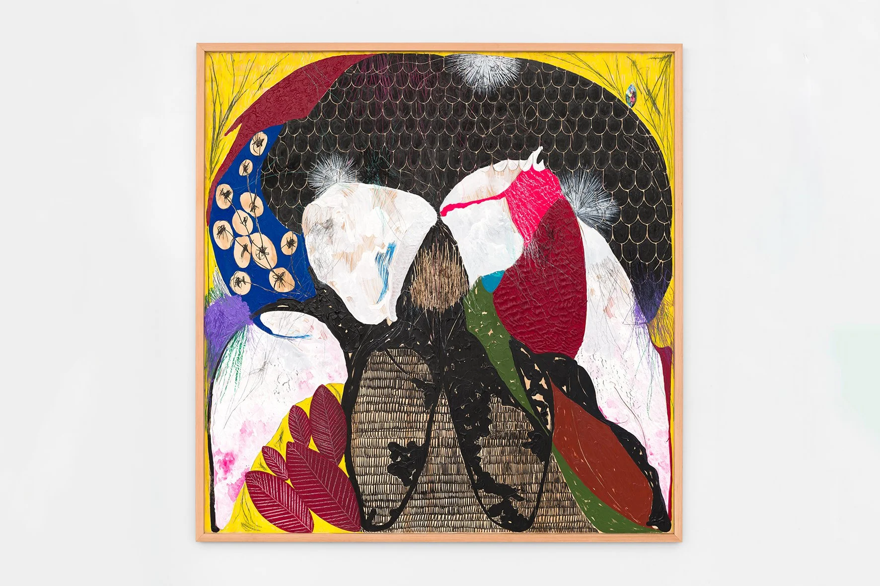 Acrylic, wax pencil, graphite pencil on wood
